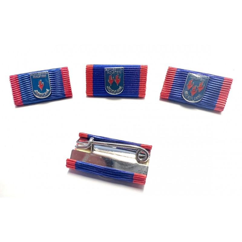 - 1-teilige Ordensspange SH komplett, bestehend aus Ripsband 25mm breit, rot-blau-rot, mit Auflage der Flamme(n) in rot auf blauem Grund, Unterteil mit Sicherheitsnadel konfektioniert mit Auflage und Sicherheitsnadel