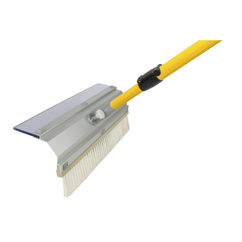 - Schnelle und einfache wechselseitige Verwendung durch zwei unterschiedliche Schiebeflächen: blaue Kunststofflippe und weißer Nylon-Besen