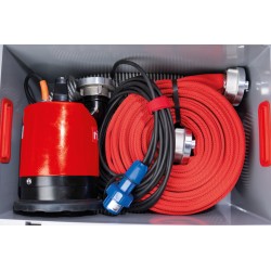 Inkl. 3 m formstabiler Schlauch, 15 m Feuerwehrschlauch C42, PRCD-Personenschutzschalter, 20 m Halteleine/Mehrzweckleine und Kupplungsschlüssel