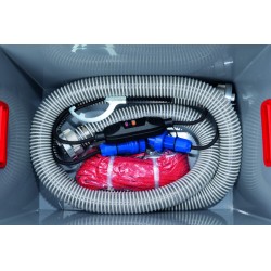 schließbarem Deckel - vor Dreck und Staub geschützt - verstaut. Zusätzlich zu der Pumpe sind ein 3 m formstabiler Schlauch,